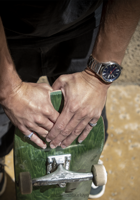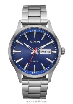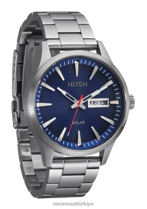 Nixon nöbetçi güneş paslanmaz çelik 22VFD96 kol saati lacivert güneş ışını/gümüş