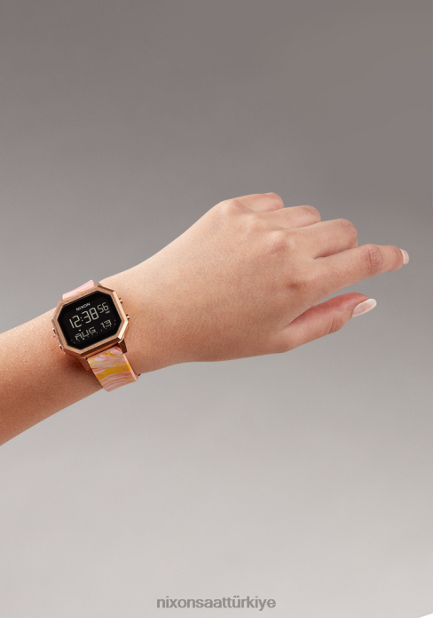 Nixon siren paslanmaz çelik 22VFD211 kol saati gül altın/pembe mermer